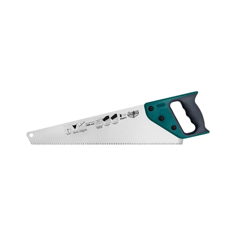 Ножовка Варяг 85676 по дереву 3х гранн. заточка сталь У8 средний зуб, обрезин. рукоятка 450мм изображения